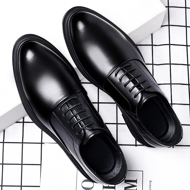Sepatu kulit pria dengan sol tebal, potongan rendah, formal bisnis, berikat tali, dengan peninggi internal 10CM, sepatu pernikahan pengantin pria, cocok dipadukan dengan setelan jas, tersedia untuk dropshipping.