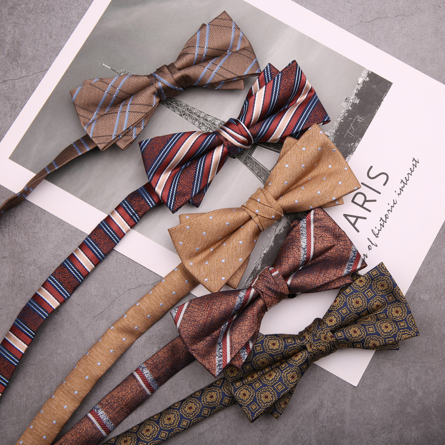 Setelan formal untuk pria, jas bisnis formal dasi tangan warna merah anggur hitam kopi biru karir pernikahan pengantin pria