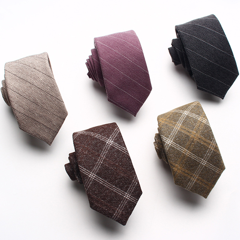 Campuran wol 6cm dasi bergaris pria kotak-kotak pengantin pengiring mempelai pria setelan kemeja aksesoris dasi grosir