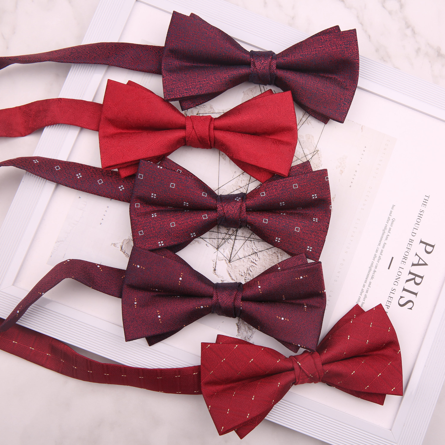Dasi kupu-kupu pengiring pengantin pria, setelan pernikahan formal Korea warna merah anggur busur