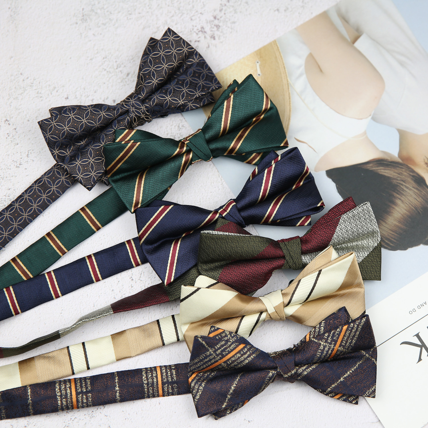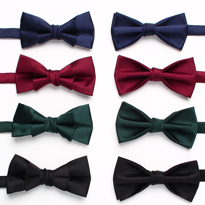 Pakaian setelan modis warna polos untuk pria, dasi kupu-kupu dua warna polos untuk pernikahan pengantin pria, merah anggur, aksesori pakaian modis pita Inggris untuk pria