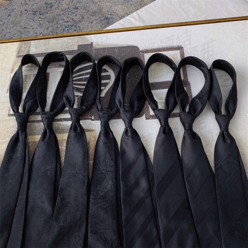 Dasi Pria Model Ritsleting Pakaian Formal Bisnis Pengantin Pria Kemeja Jas Kasual Tanpa Kikat Garis-Garis Hitam