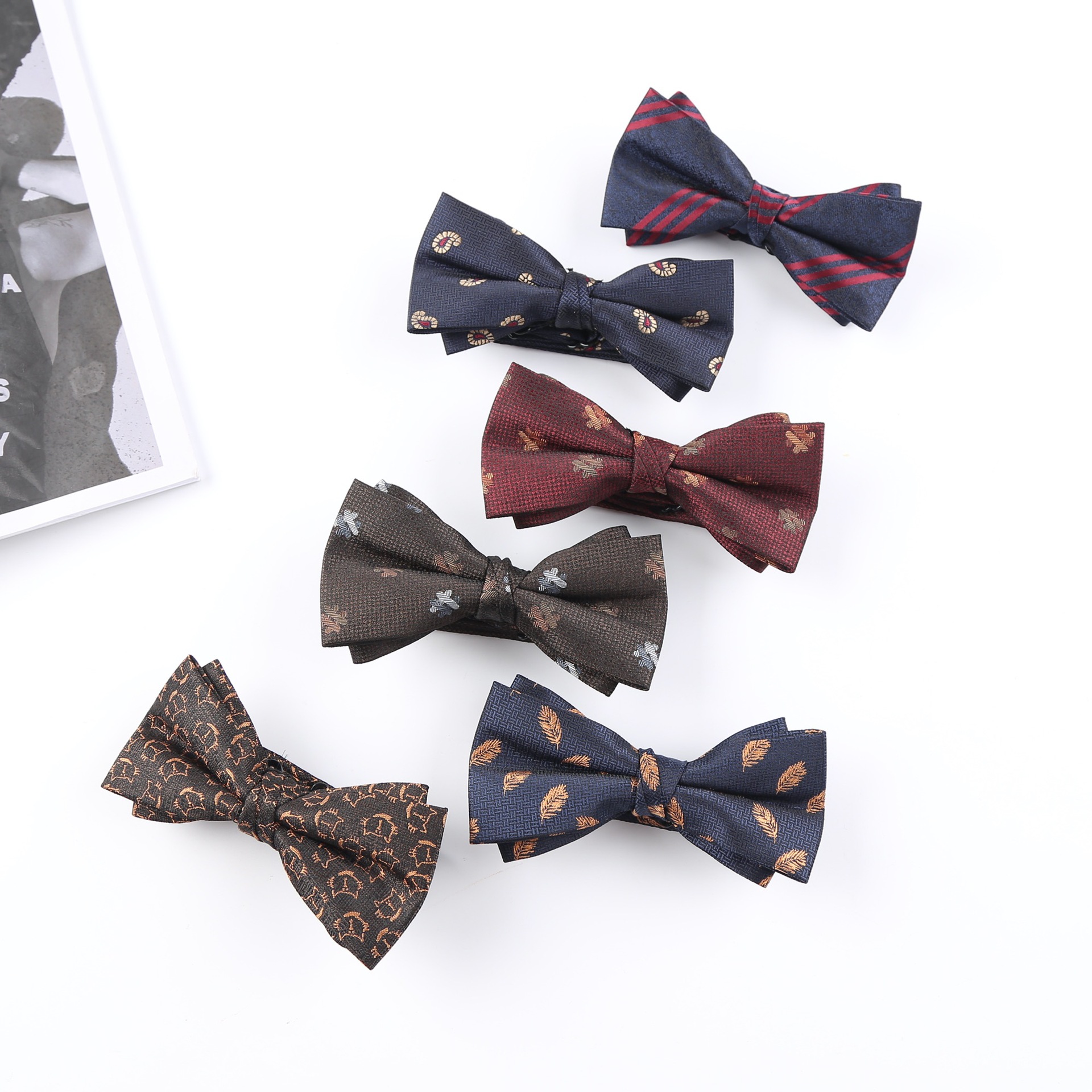 Pria pola kecil anggur merah pernikahan dasi kupu-kupu coklat setelan pengantin pria gaun formal pengiring pengantin dasi kupu-kupu