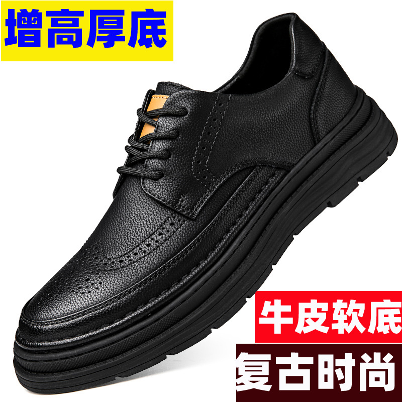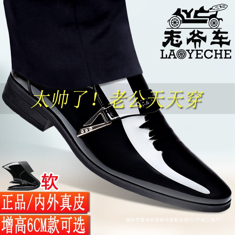 Sepatu Kulit Pakaian Formal Pemuda Inggris Kasual Bisnis Sepatu Kulit Kelas Atas Setelan Pengantin Pria Sepatu Pria Penambah Tinggi Dalam