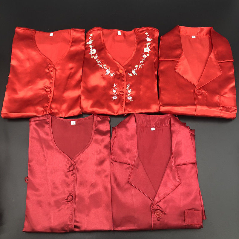 Piyama Merah Pakaian Pengantin Pengantin Pria Pakaian Pernikahan Baju Dalaman Pakaian Atas Baju Dalaman Gaun Tradisional Naga Phoenix Sutra Panas