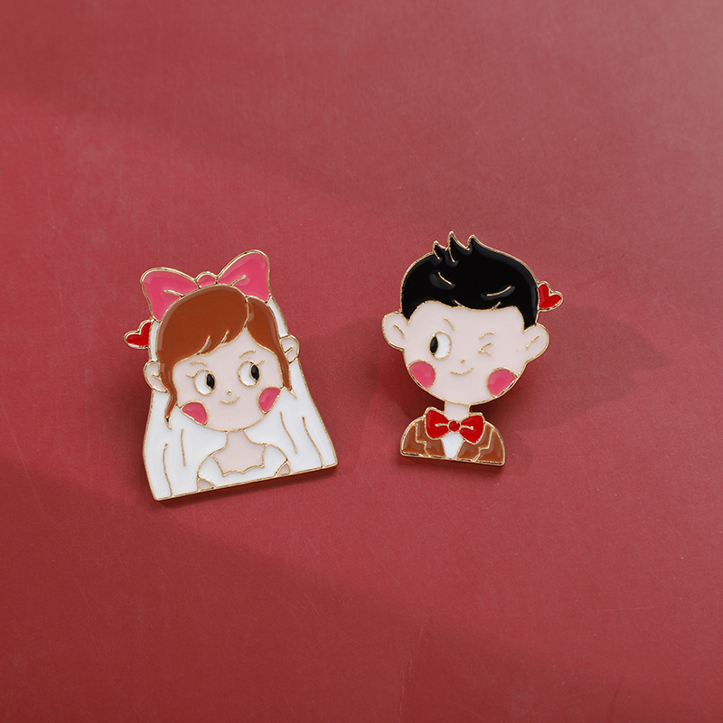 Bros logam bentuk pengantin laki-laki dan perempuan seri gaun pernikahan meriah hadiah pernikahan lencana Avatar pasangan lucu kartun