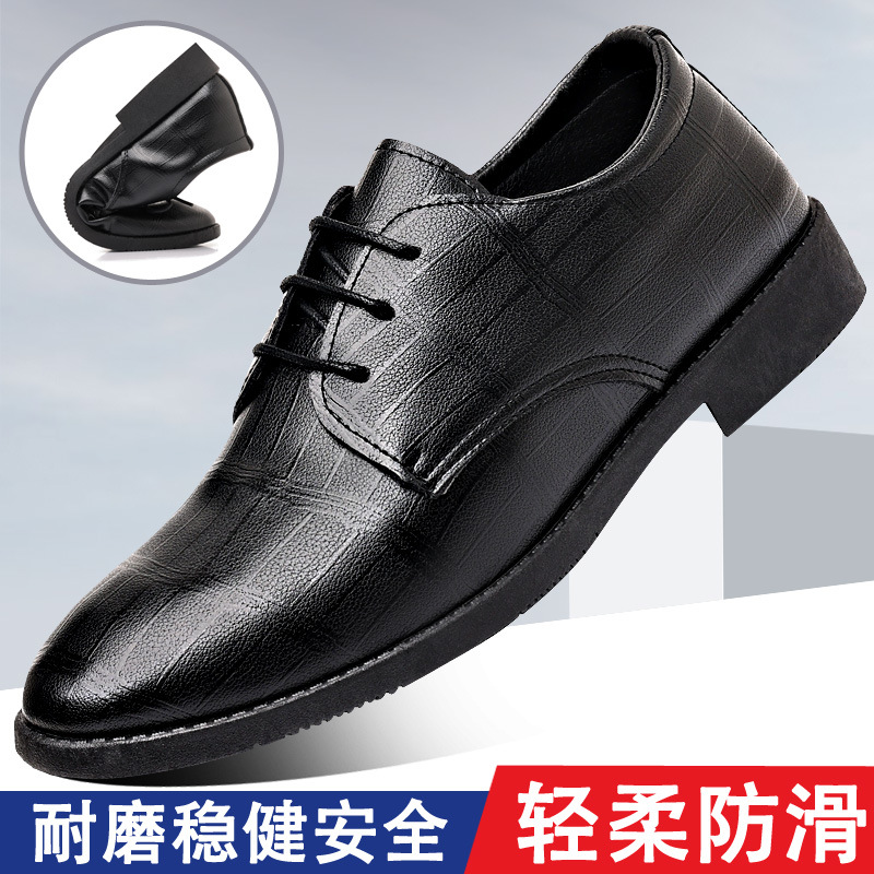 Sepatu Pakaian Formal Bisnis Sepatu Kulit Pria Musim Semi Pengiring Pengantin Pria Sepatu Pria Kasual Kerja Sol Empuk Sepatu Pria Warna Hitam