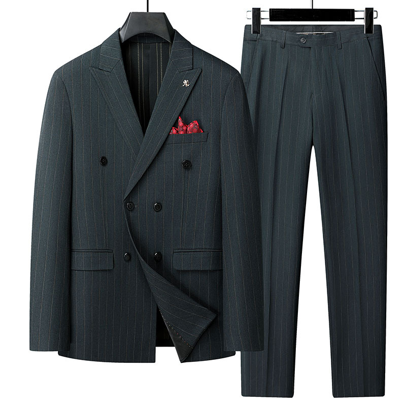 Setelan pakaian pria ukuran besar musim semi dan musim gugur pakaian formal bisnis pakaian bergaris setelan gaun pernikahan pengantin pria