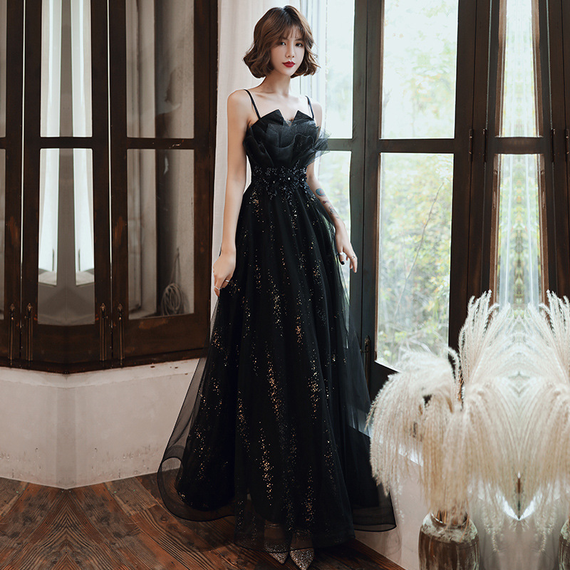 Gaun malam hitam untuk wanita 2026 gaya baru mewah kelas atas gaun pengantin niche dewasa gaun putri untuk acara pertunangan dan pesta