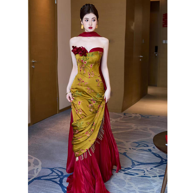 Jubah Pagi Gaya Tiongkok Baru Gaun Malam Pertunangan Pengantin Rumbai Gaya Kelas Atas Model Baru 2025 Wanita Gaun Malam Bergaya Cina