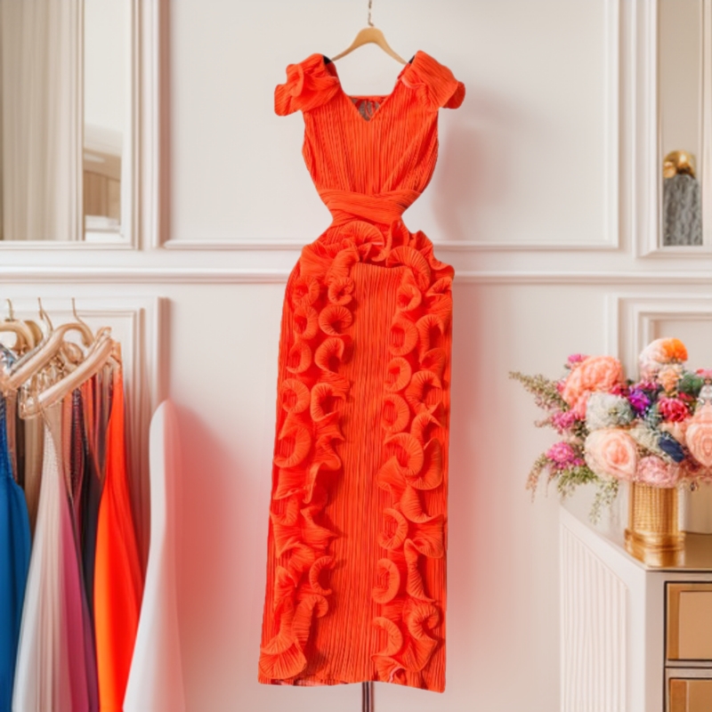 Gaun Wanita Eropa dan Amerika Gaun Top Pita Seksi Lintas Batas Gaun Malam Perban Elastis Bunga Tiga Dimensi
