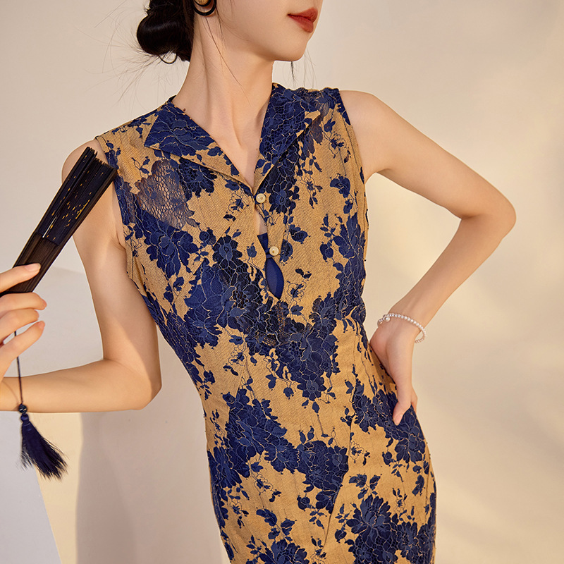 Gaun cheongsam berenda berongga gaya nasional musim panas, mode baru mewah ringan, gaun elegan gaya Cina baru model ZX N5025