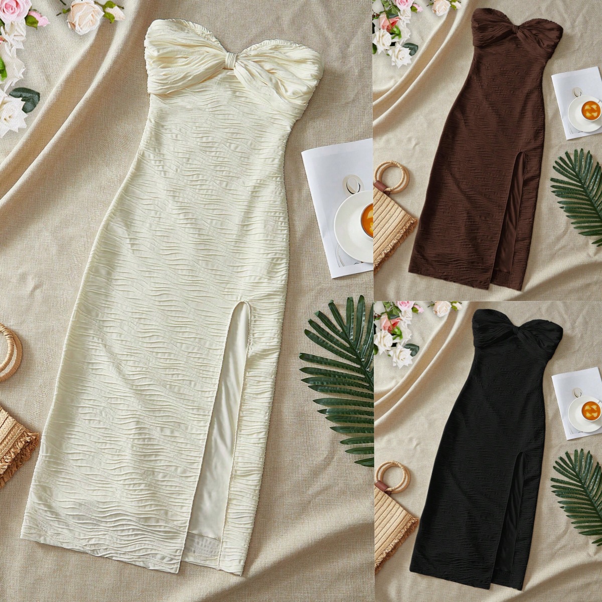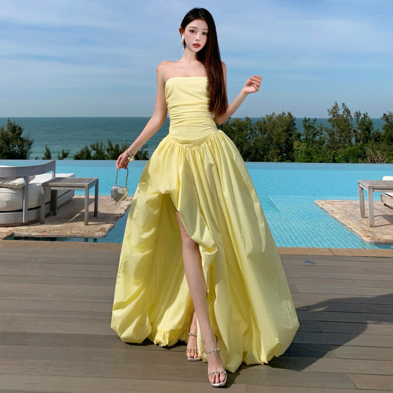 法式抹胸开叉连衣裙女高级感气质收腰显瘦度假礼服裙