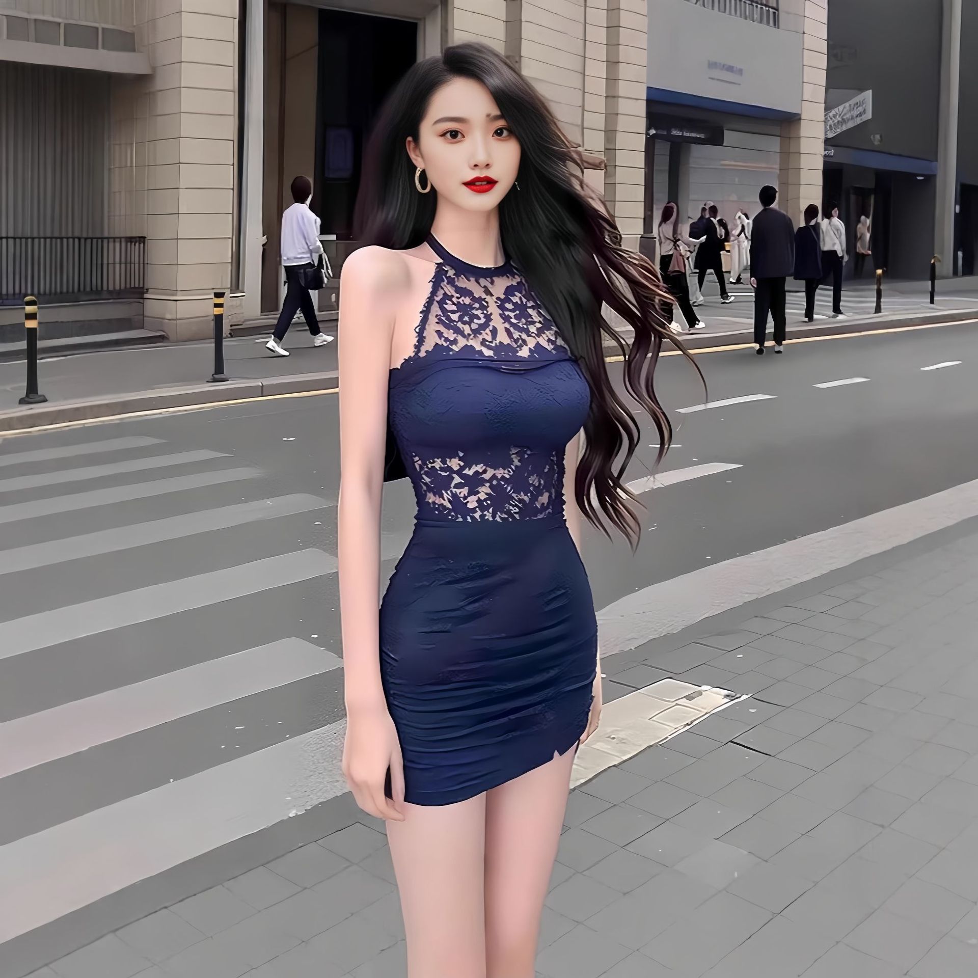 Gaun cheongsam pendek gaya Cina baru yang mempercantik pinggang, dengan detail renda seksi, model halter neck untuk wanita, cocok untuk pakaian luar.