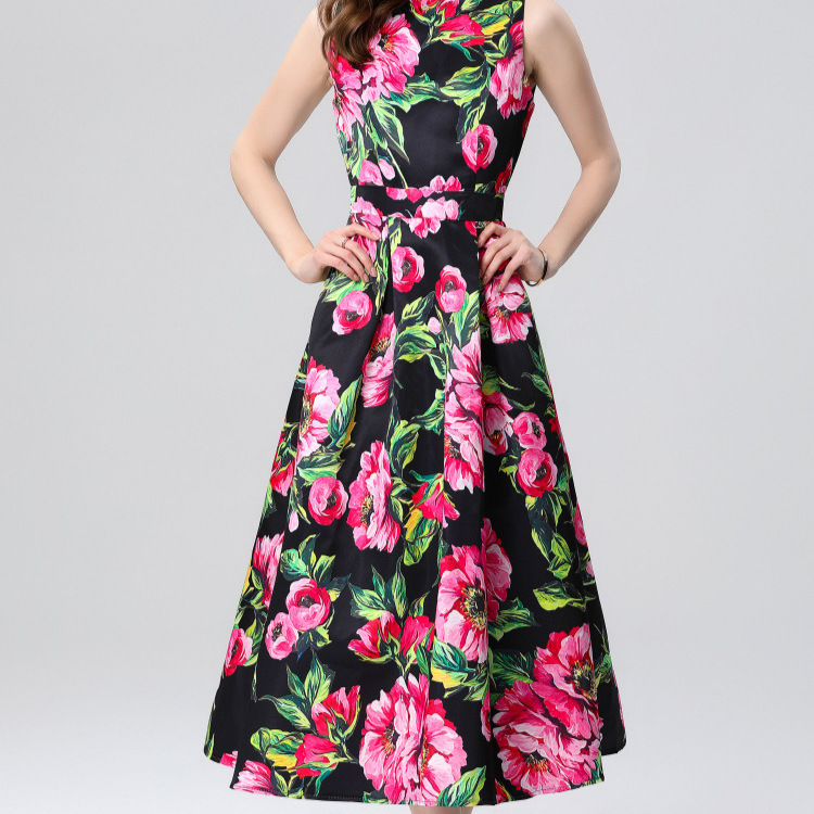 Gaun Rompi Bersablon Gaya Senior Sosialita Pakaian Musim Panas Wanita Rok Gaun Elegan Besar Elegan Terlihat Langsing Pinggang Ketat Model Baru