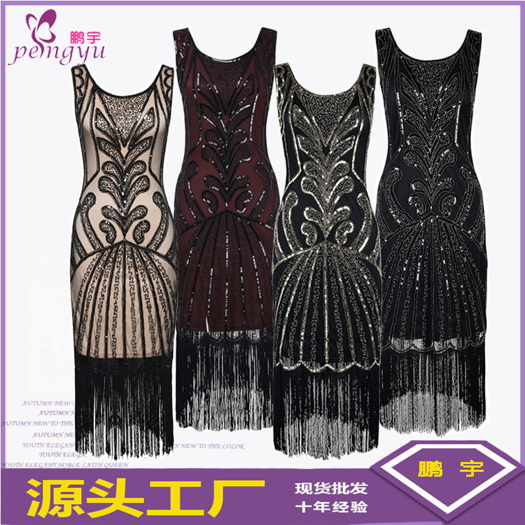 Amazon wish perdagangan luar negeri 2020 gaun berpayet retro Eropa dan Amerika gaun malam ukuran besar rumbai bermanik