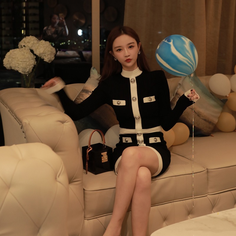 Gaun Battle Tahun Baru Wanita, Gaun kecil Hepburn Prancis pakaian Tahun Baru gaya channel gaun ketat rajut gaun hitam kecil