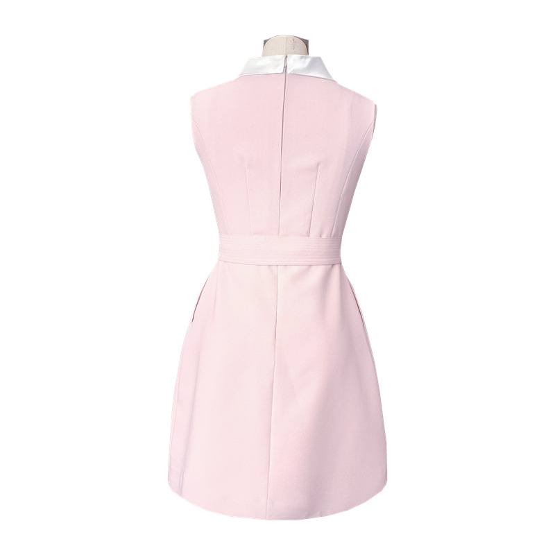 Wumei Yang Yan Sweet Model Sama Warna Merah Muda Tanpa Lengan Rok Sendi Gaun Elegan Gaya Perancis Rok Putri Emas Gaya Xiaoxiang Wanita