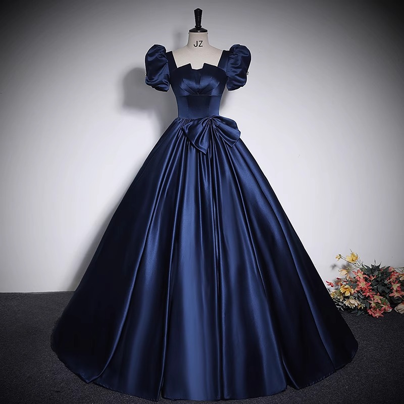 Gaun malam kualitas tinggi baru satin tunggal penampilan panggung temperamen pettiskirt siswa seni vokal gaun ujian wanita