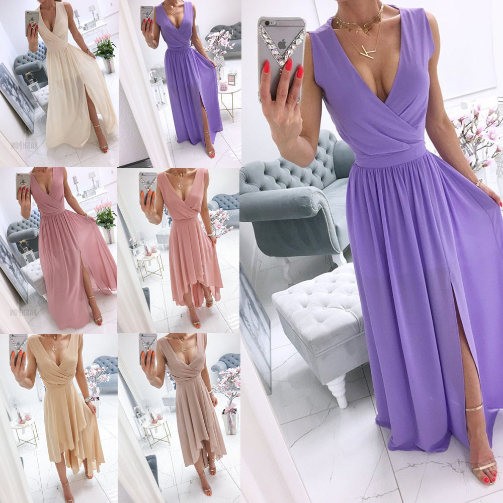 AliExpress wish Amazon populer musim panas baru tanpa lengan warna solid gaun V-neck pakaian wanita 2024