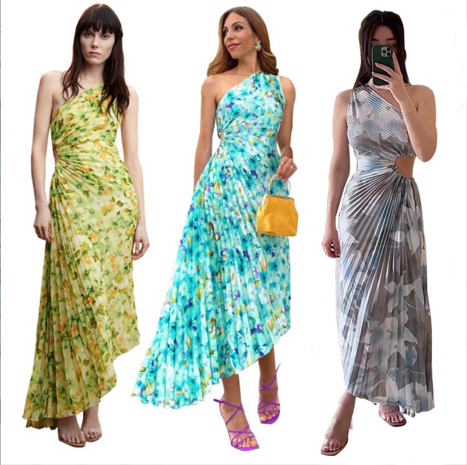 Gaun lipit motif bunga Satu bahu Amazon populer Eropa dan Amerika baru 2023 (elastis empat sisi)