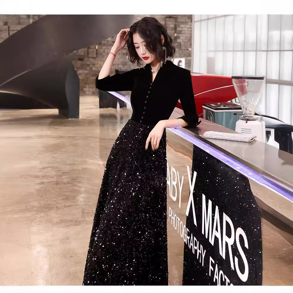 Gaun malam untuk wanita 2025 gaya baru pesta elegan mewah anggun hitam sosialita kemewahan ringan gaun pertemuan tahunan.