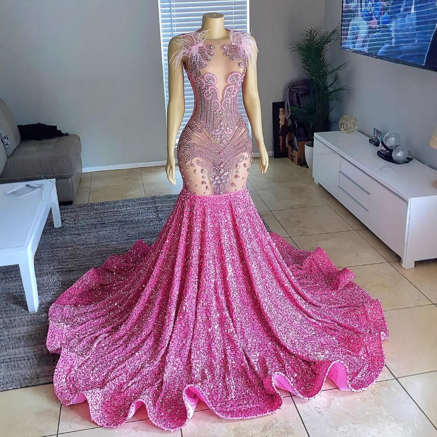 Gaun malam ekor ikan berpayet pola mawar gaun panjang bahu terbuka daun teratai pakaian wanita Eropa Afrika mewah