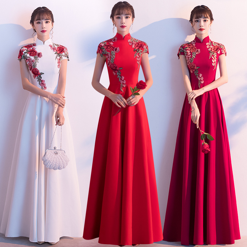 Gaun musim panas bergaya Cina dengan kerah berdiri dan lengan mengembang, gaun cheongsam bordir baru yang ditingkatkan dan mewah untuk wanita, model ZX N5036.