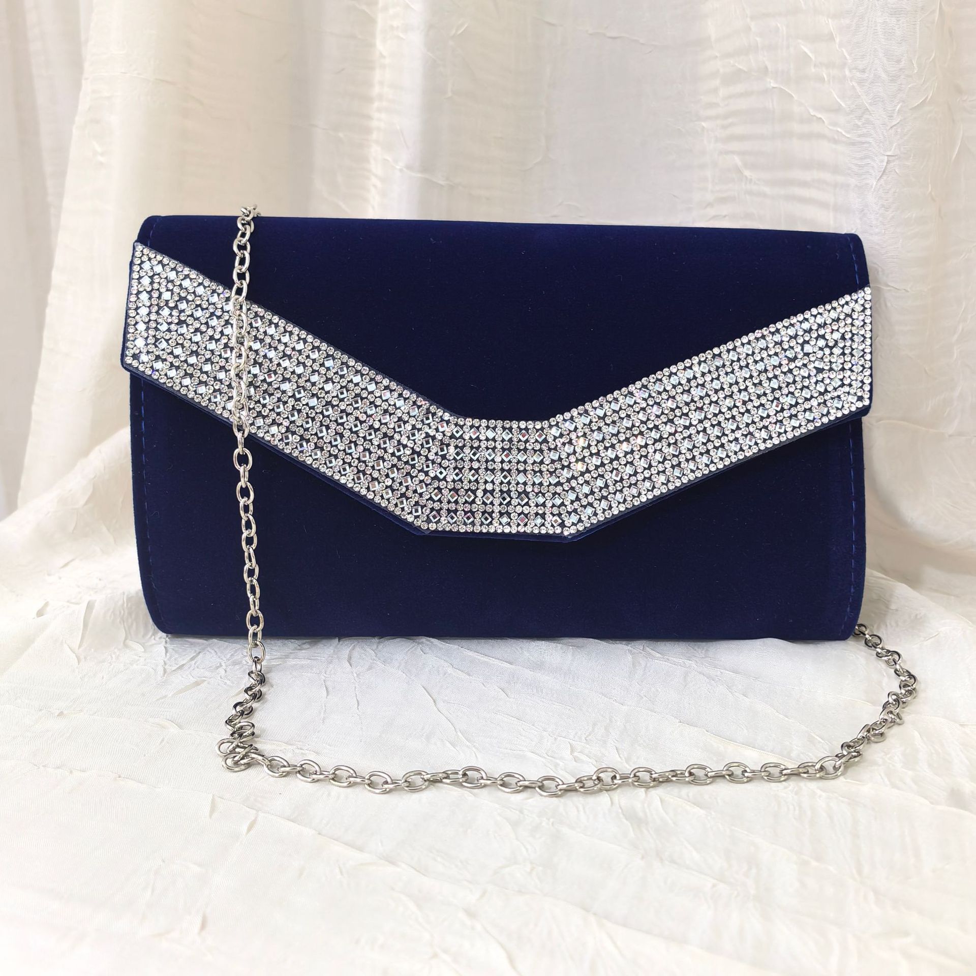 2024冬季新款精细绒女士手拿包贴钻高档礼服斜挎包名媛手包晚宴包
