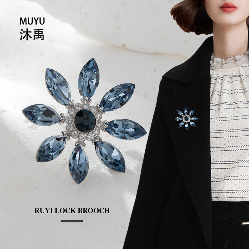 新轻奢高级感水晶花朵胸针防走光固定衣服别针纪念品礼物礼服胸花