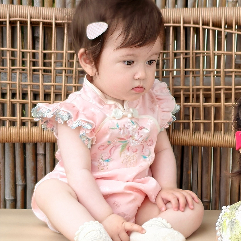 Jumpsuit Anak Hanfu Musim Panas Pakaian Ulang Tahun Baru Gaya Tiongkok Baru Pakaian Anak Perempuan Cheongsam Pakaian Merangkak Bayi Pakaian Perminggu