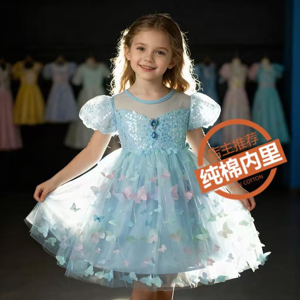 Gaun anak perempuan, gaun bayi modis, rok tutu, gaun putri Elsa bercahaya, harga pabrik untuk anak-anak ukuran kecil dan sedang, dropshipping satu potong