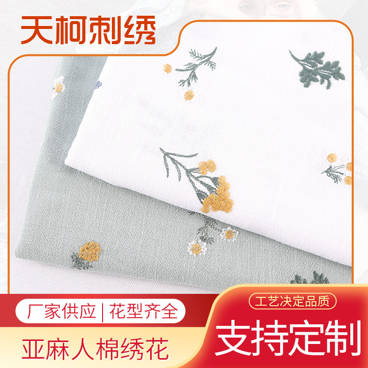 Pasokan pabrik kain linen rayon bordir tanaman kain cheongsam tas buatan tangan kain bantal