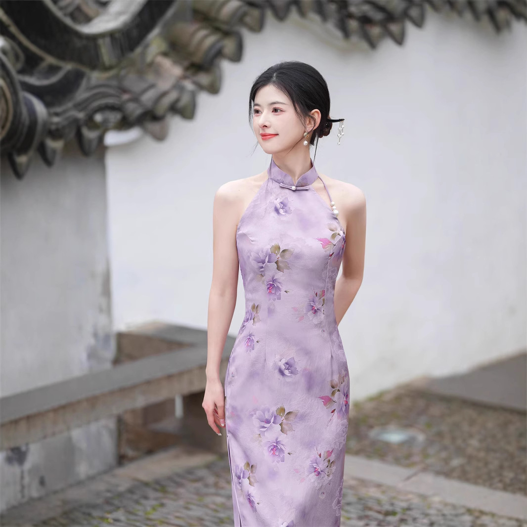 2025新款旗袍改良年轻款挂脖连衣裙无袖新中式少女高级感气质旗袍