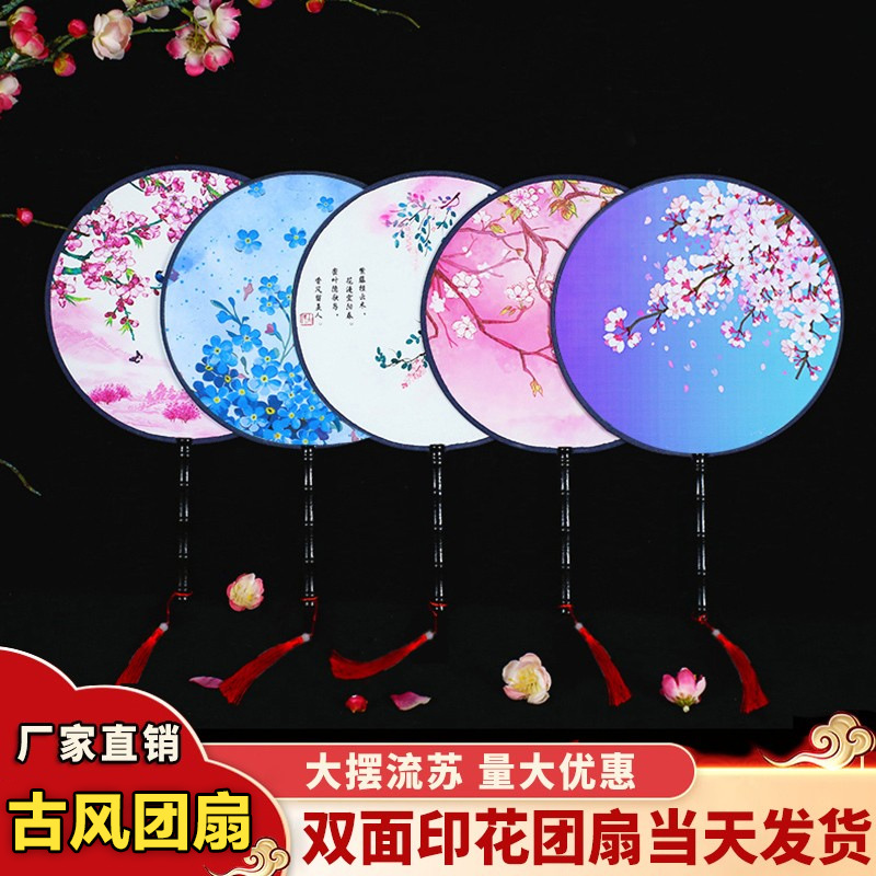 Kipas Istana Gaya Kuno Besar Kipas Istana Klasik Han Kipas Bulat Dua Sisi Gaya Tiongkok Gagang Kayu Kipas Tari Kipas Cheongsam Kipas