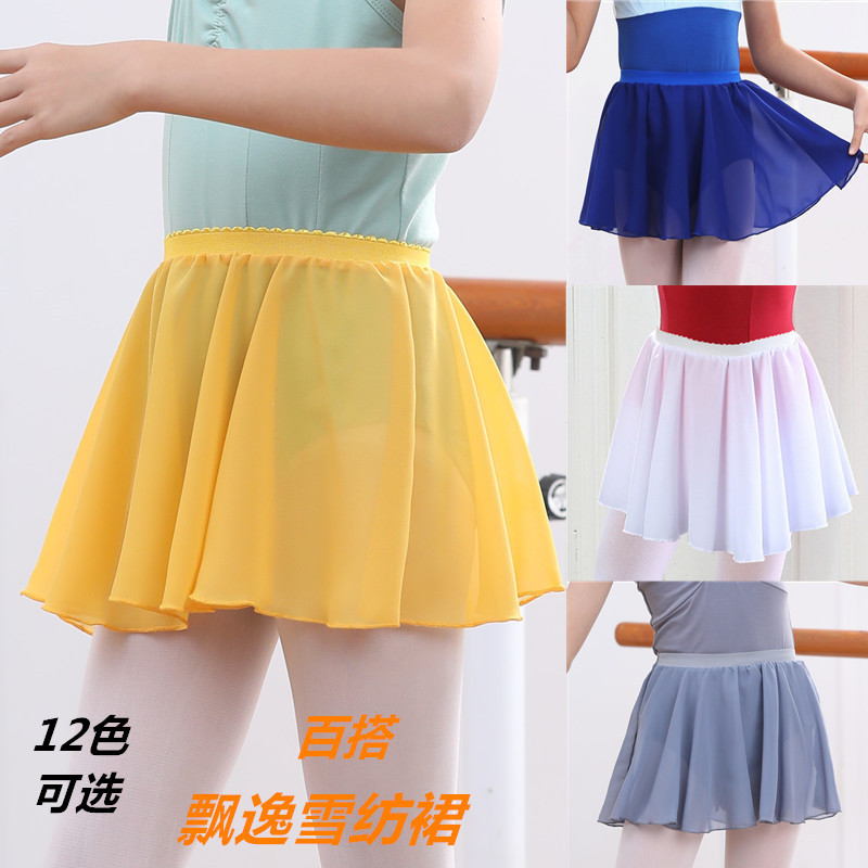 Rok dansa anak-anak, cocok untuk semua dengan rok sifon elegan 100D baju dansa Anak perempuan shy rok setengah celemek