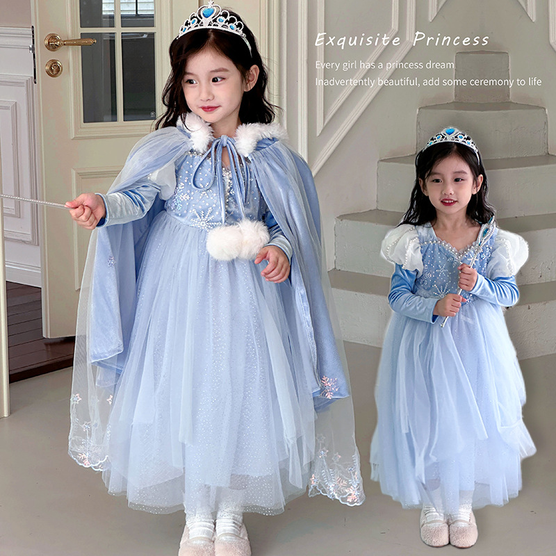 Gaun putri anak perempuan, baju ulang tahun anak perempuan Elsa Frozen, baru musim gugur dan musim dingin