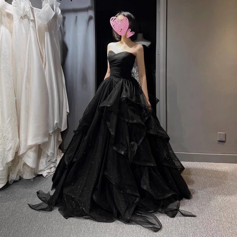 Gaun Malam Warna Hitam Elegan Rok Tutu Gaun Malam Acara Perjamuan Pesta Tahunan Upacara Pertunjukan Musik Vokal