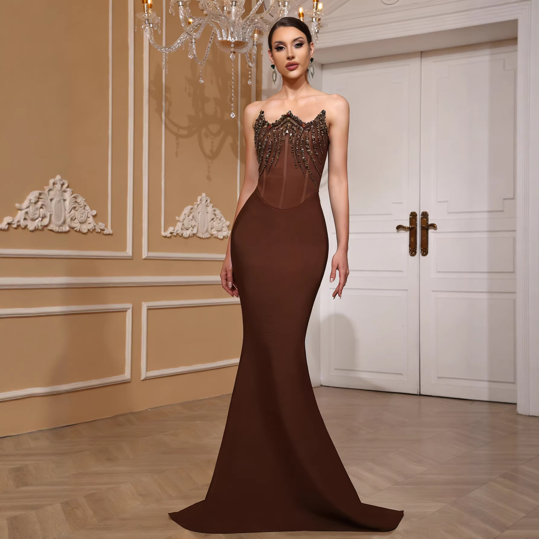 Gaun trailing kecil pengiring pengantin ketat ketat ketat pesta perjamuan seksi Amazon gaun Eropa dan Amerika lintas batas