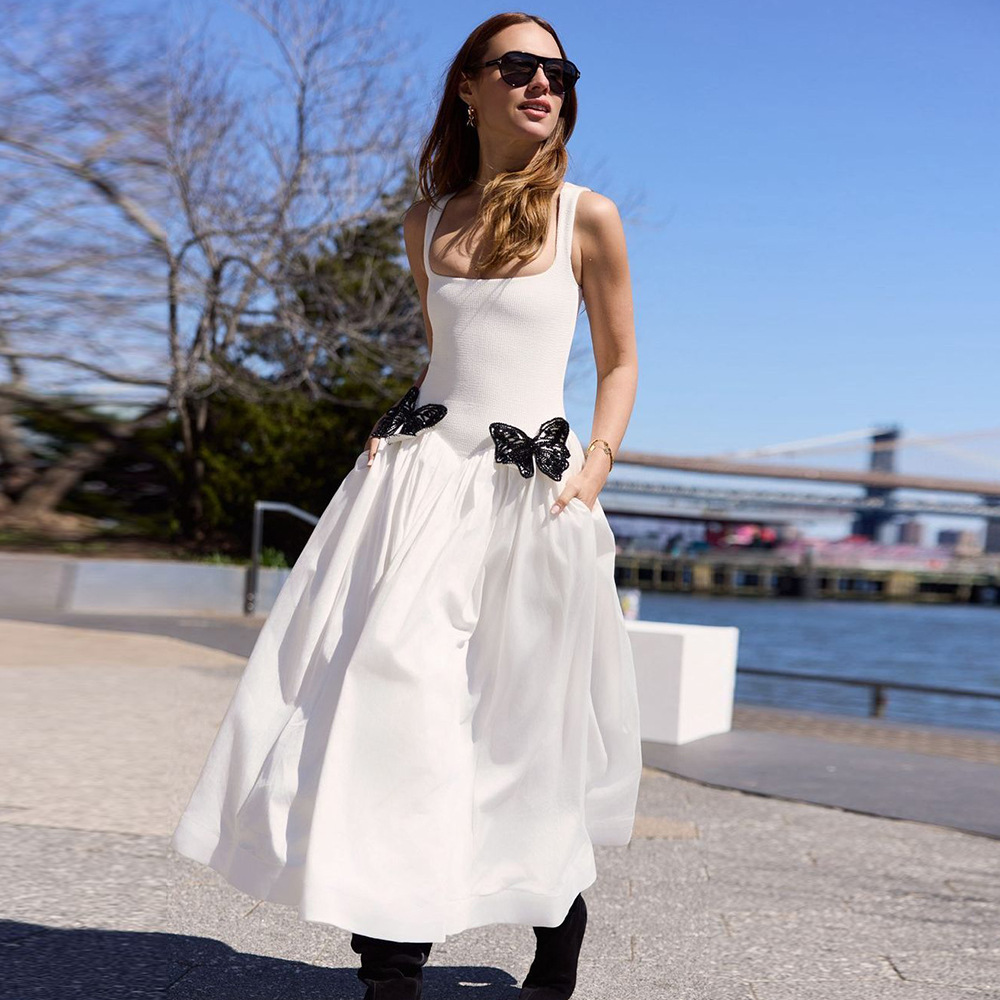 AliExpress Gaun Tali Putih Model Baru Eropa Amerika Rok Besar Rok Perban Rok Seksi Dekorasi Kupu-kupu