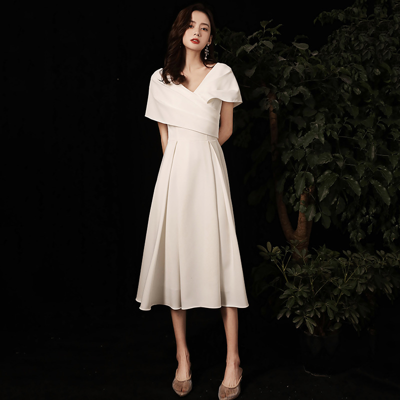 Rok gaun malam putih kecil 2024 wanita baru gaun jamuan makan gaun malam satin Prancis grosir