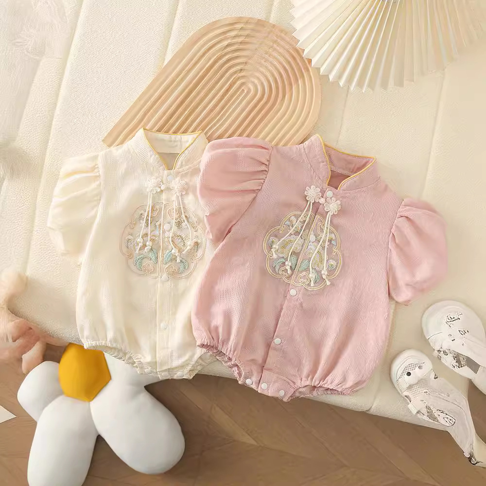 Tas segitiga bayi musim panas romper fashion wanita harta karun gaya nasional cheongsam jumpsuit Hanfu Princess puff lengan romper