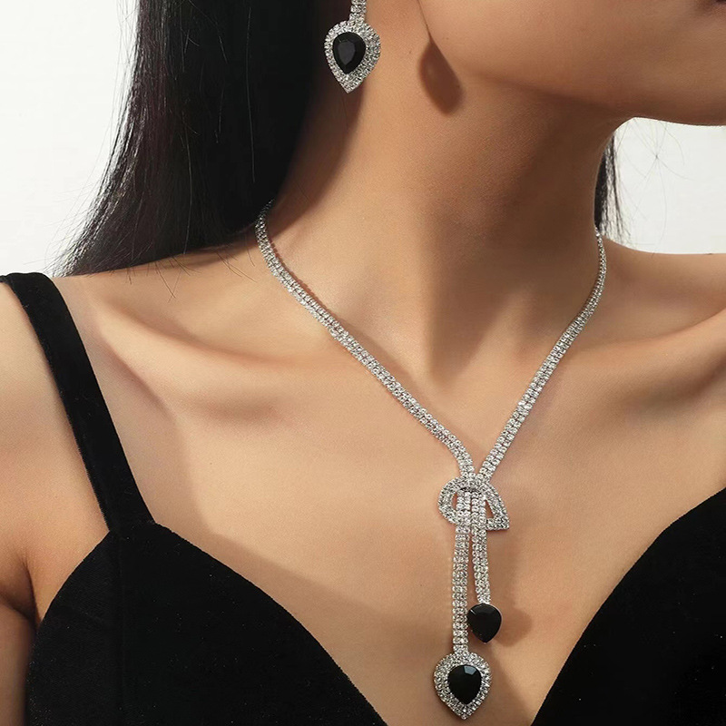欧美奢华水滴宝石吊坠女士首饰 婚礼礼服项链耳环配饰跨境