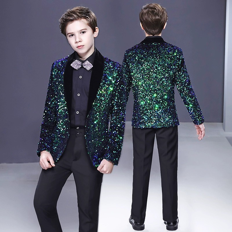 绿色亮片儿童西装礼服生日派对帅气时尚钢琴小提琴演出服2025新款