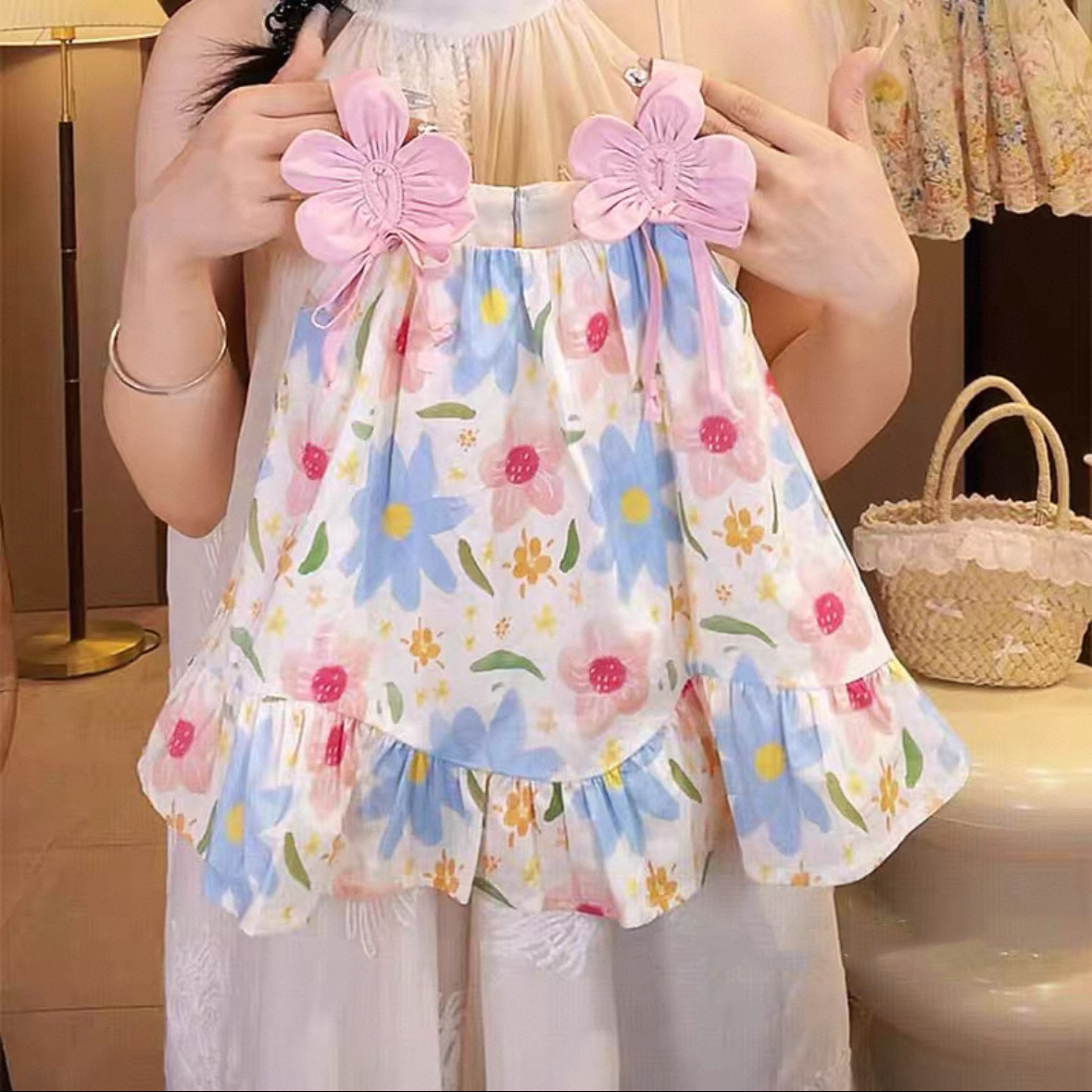 女童度假风碎花连衣裙2025夏季新款周岁礼服小童女宝宝洋气背心裙