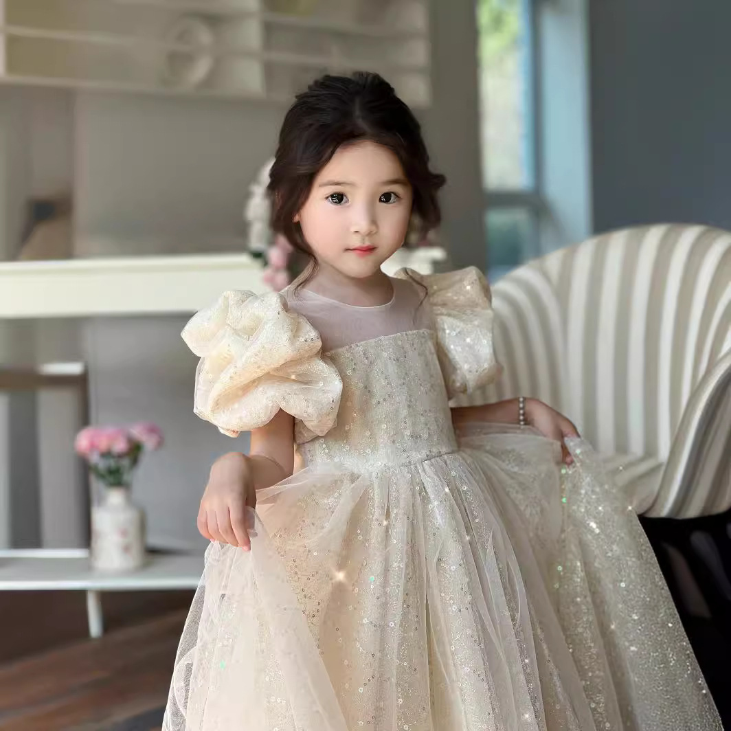 Gaun anak perempuan gaun musim panas 24 tahun Gaun puff lengan besar ayunan Barat gaun benang putri gaun ulang tahun anak-anak