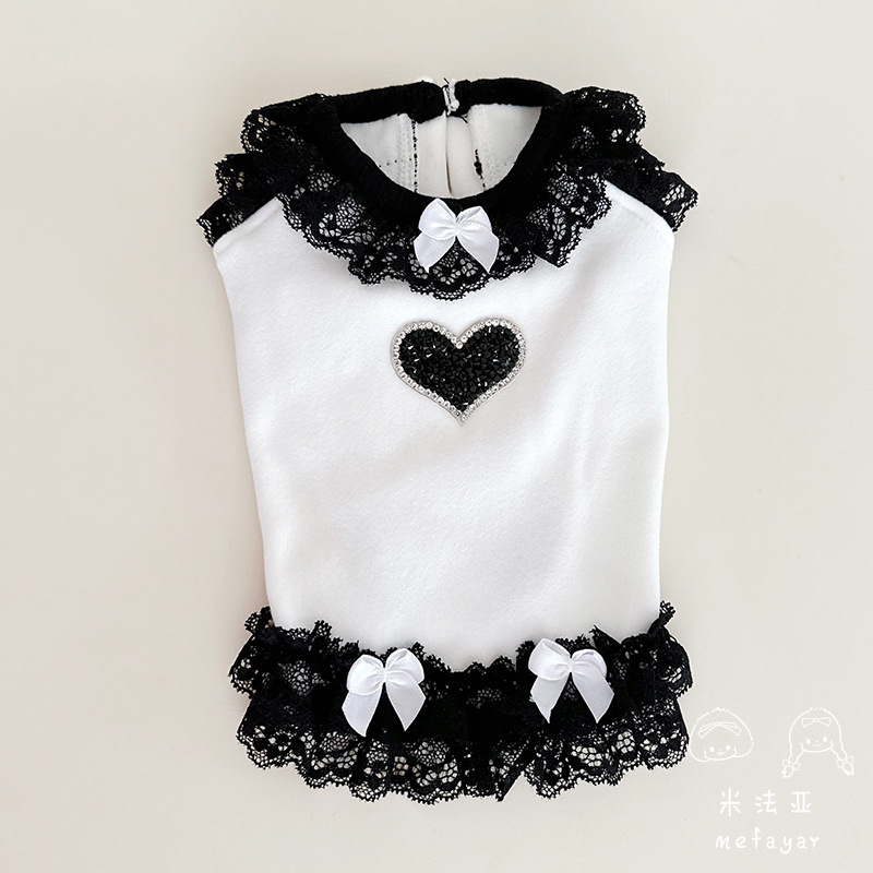 Mifaya Pakaian Anjing Kucing Peliharaan Musim Semi Musim Gugur Musim Dingin Hitam Putih Beludru Kupu-Kupu Busur Panas Berlian Cinta Rok Putri Renda Rumah