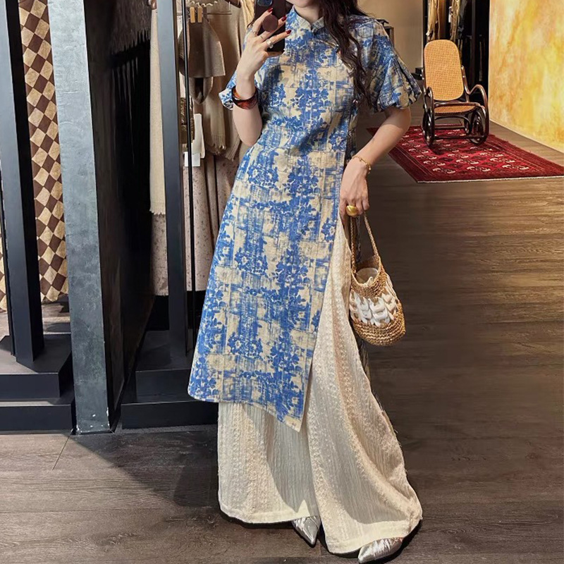[Flower Jubilee] Cheongsam Modis Modifikasi Katun Linen Cheongsam Retro Desain Baru Musim Panas 2025