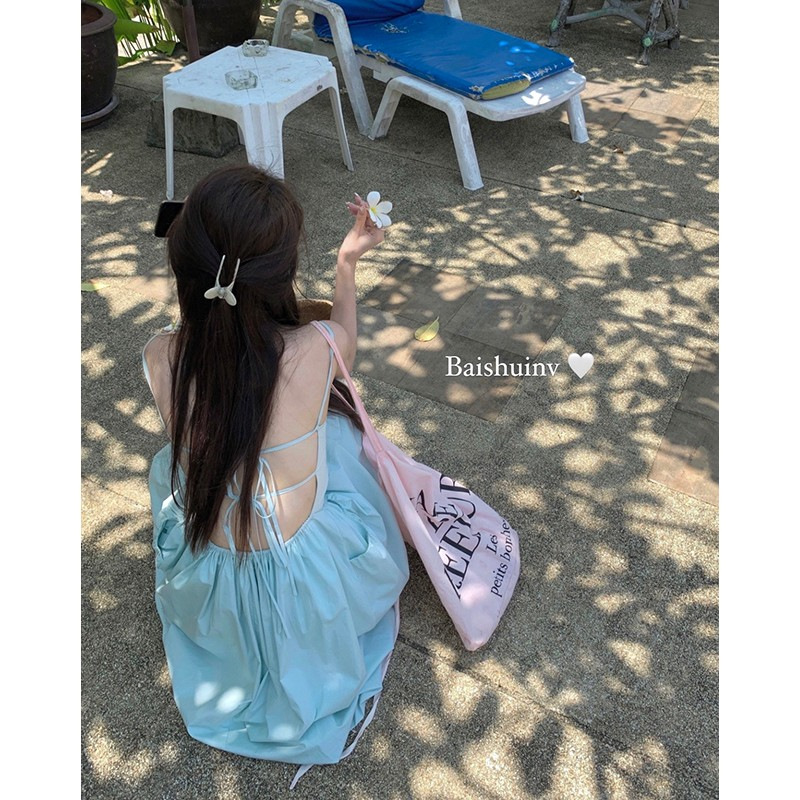 夏季多巴胺仙女裙露背吊带连衣裙女夏海边沙滩度假风仙女长裙子