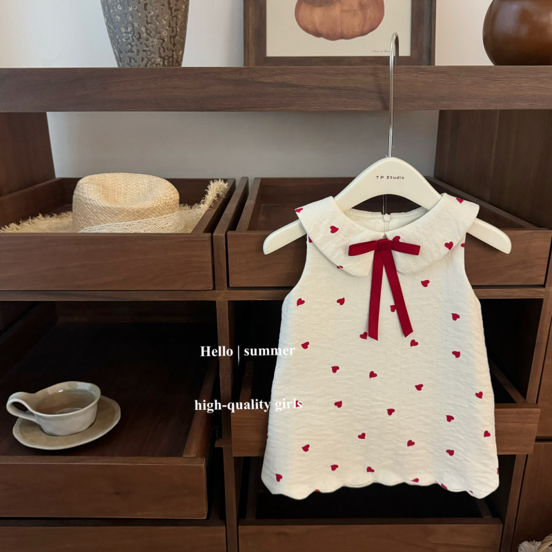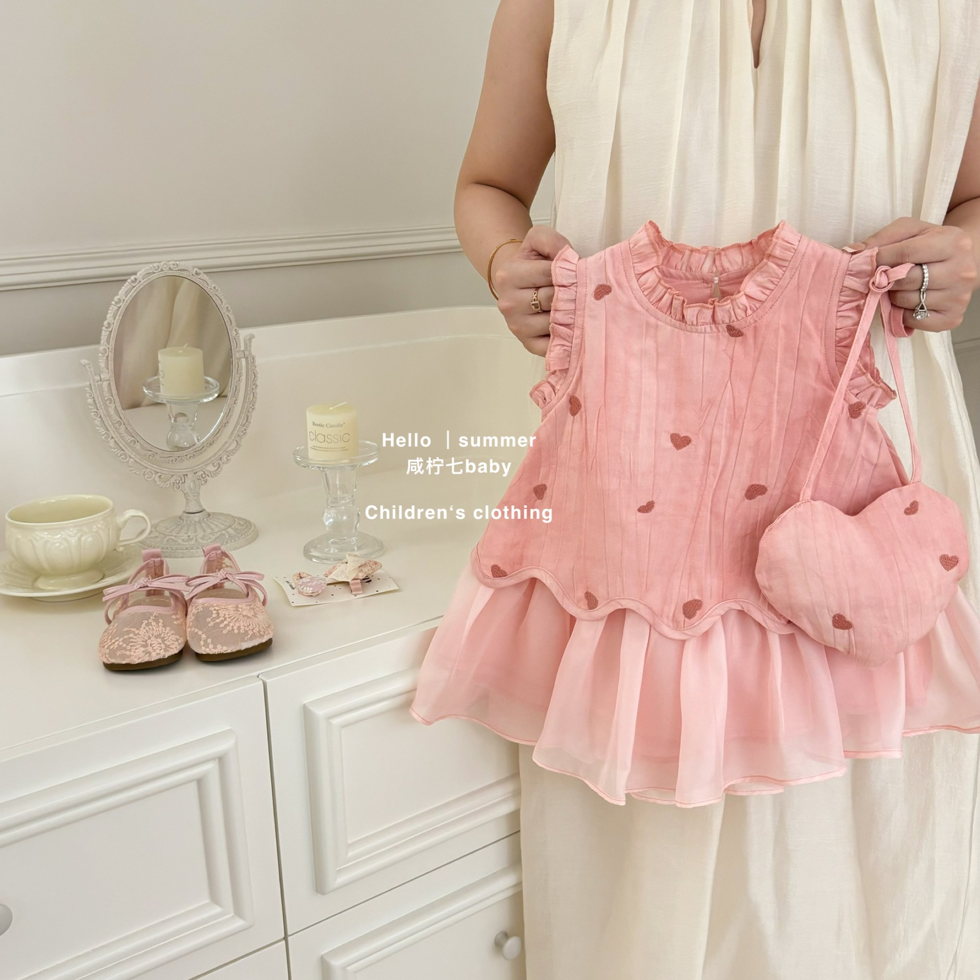 女童夏季甜美爱心连衣裙女宝宝奶油米可爱立体小爱心蝴蝶结公主裙